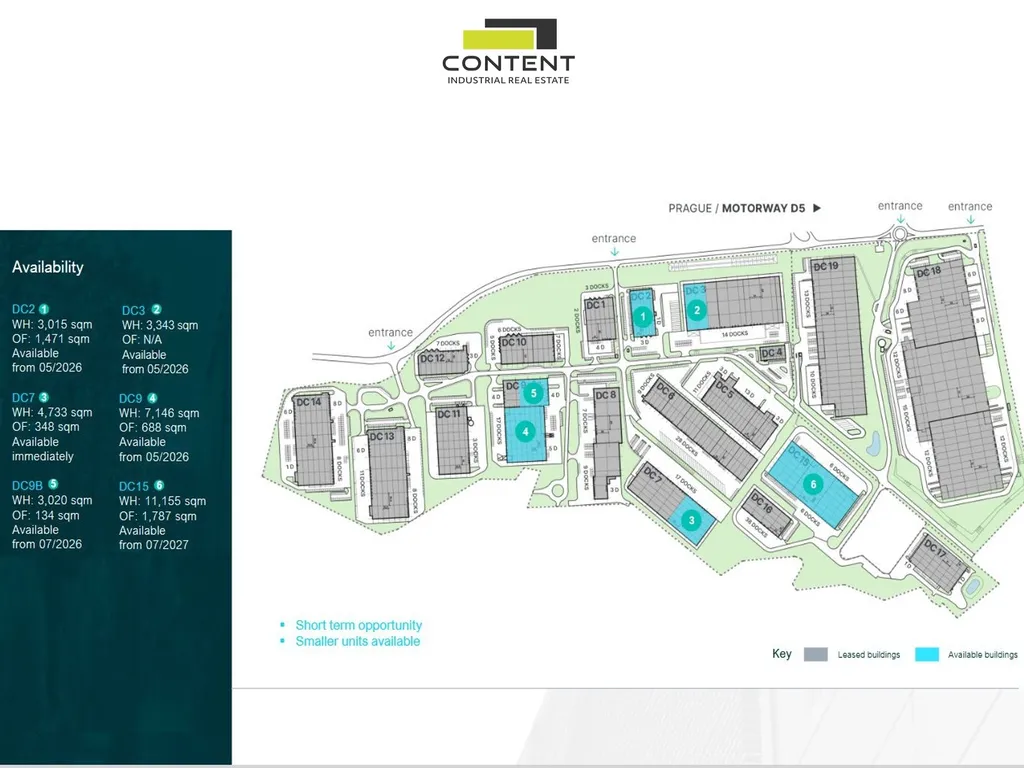 - v areálu k dispozici prostory 1769 m² - 11000 m².