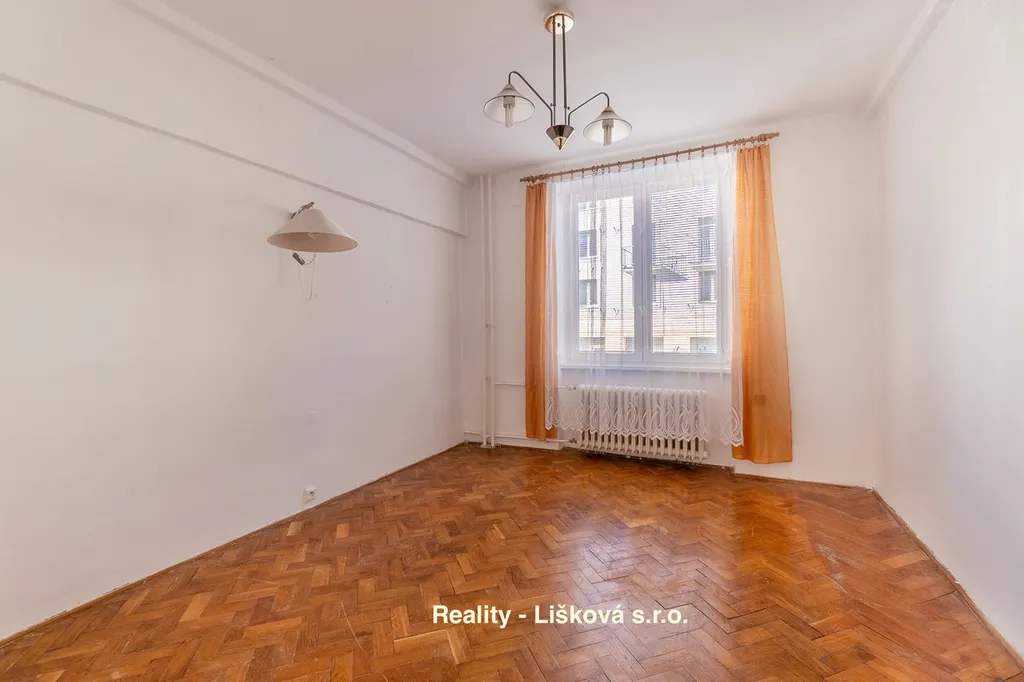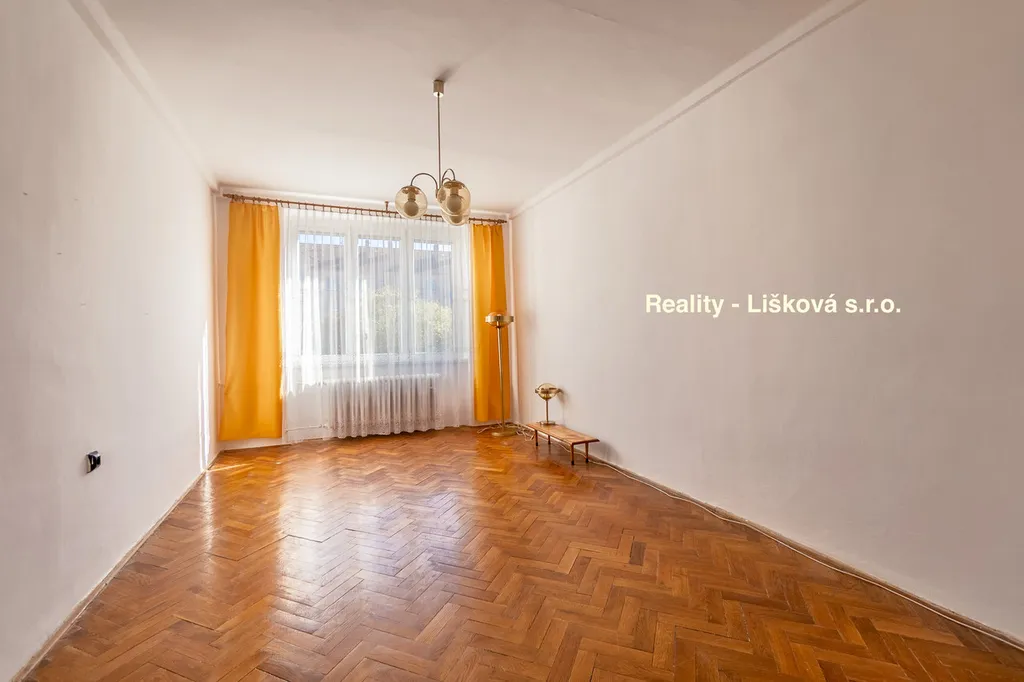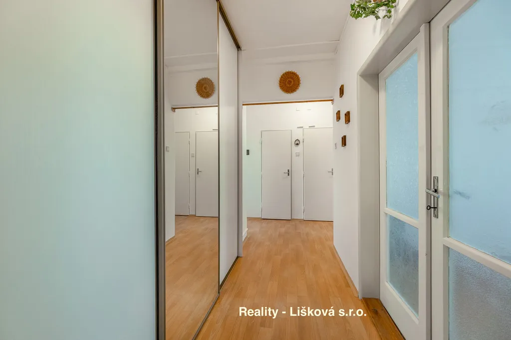 Dispozice bytu zahrnuje prostornou předsíň s vestavěnou skříní na míru, dva samostatné pokoje, kuchyni, koupelnu, samostatné WC a praktickou komoru. V obytných místnostech jsou zachovalé parkety.