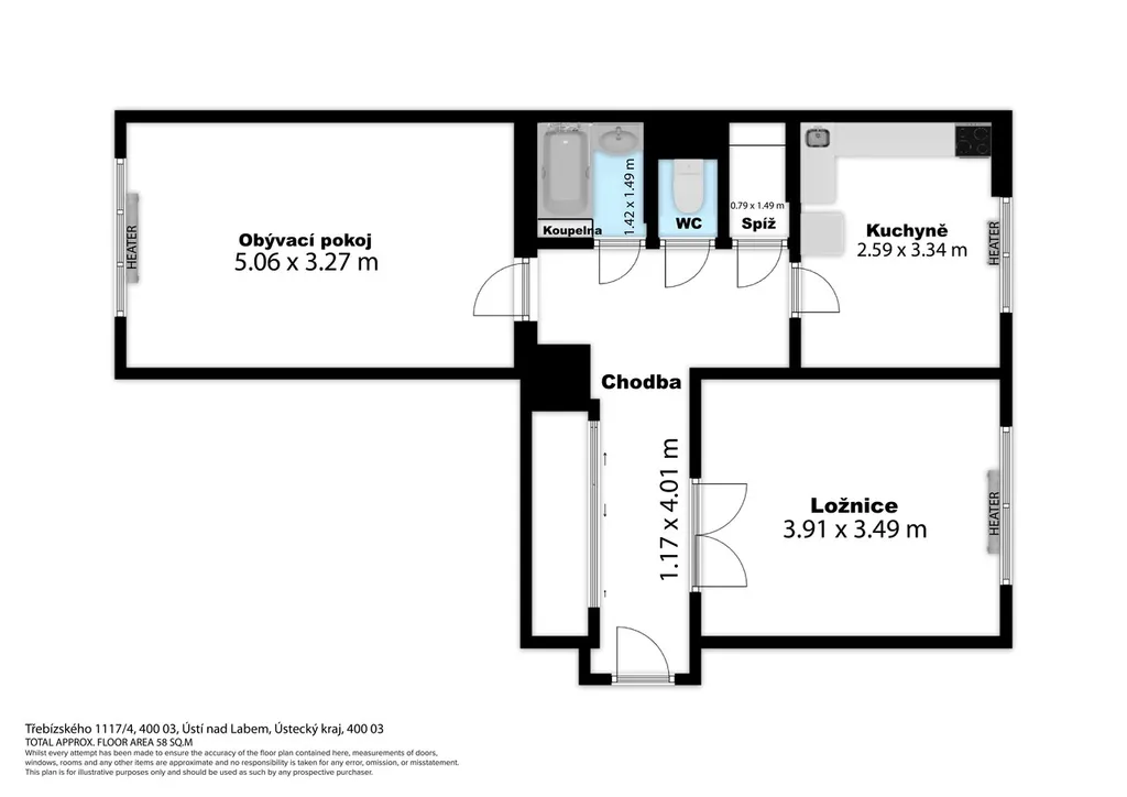 Velkou výhodou je lokalita – v docházkové vzdálenosti se nachází zastávka MHD, obchod Penny Market i oblíbená cyklostezka podél Labe.