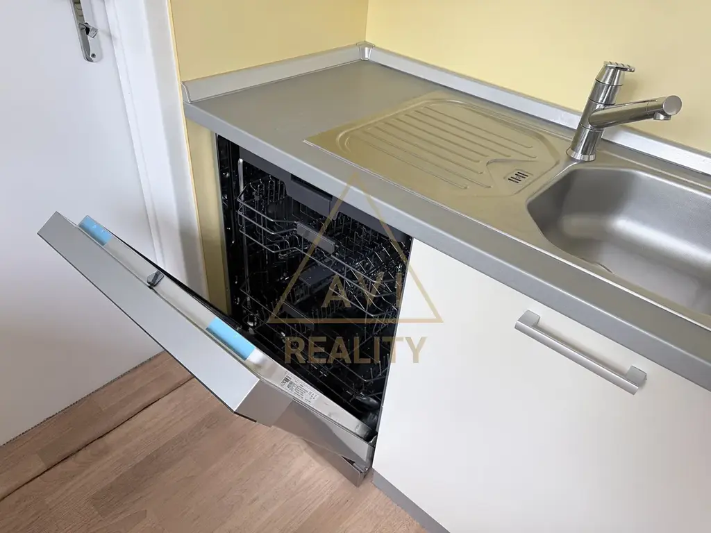 Kuchyňská linka je vybavena spotřebiči – nová myčka, lednice s mrazákem, sporák se sklokeramickou varnou deskou a troubou, digestoř.