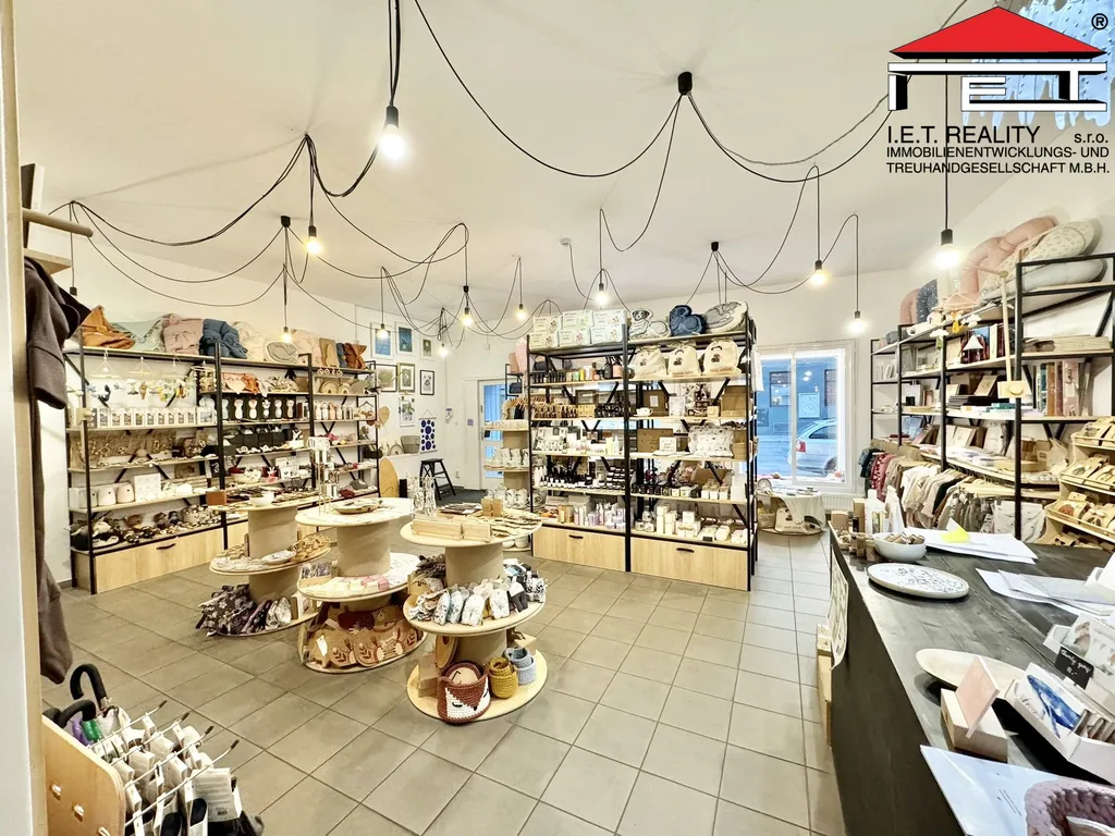 Přední část disponuje velkou výlohou, přímým vstupem z ulice a prostornou reklamní plochou. Prodejní plocha je v praktickém tvaru písmene "L", dále je prostor vybaven vlastním zázemím s WC a druhým vstupem z vnitrobloku.