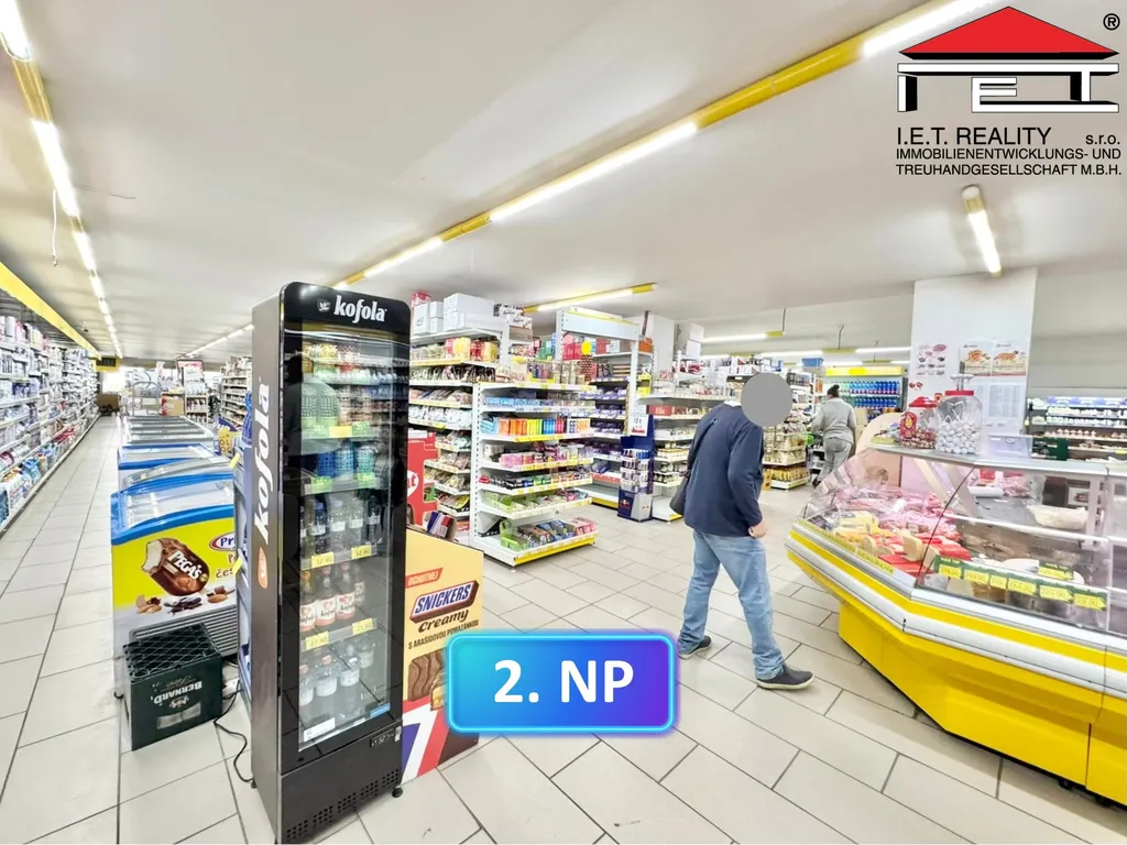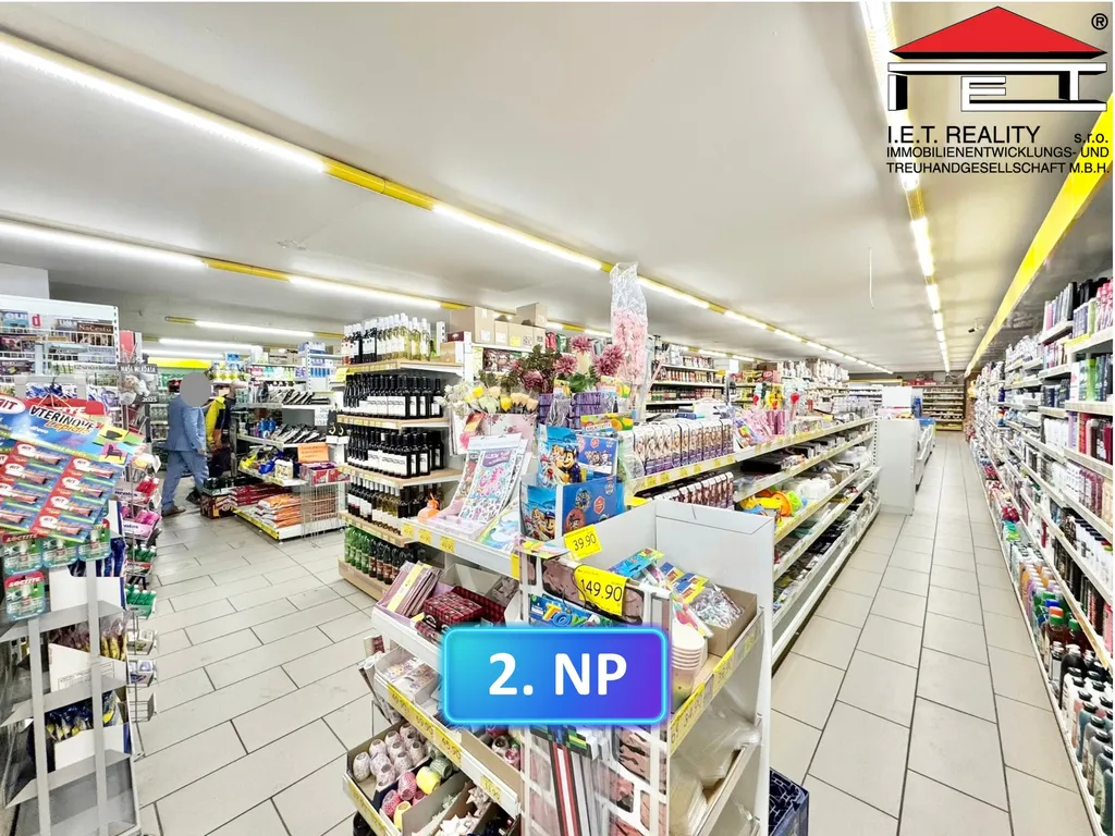 2.NP o výměře cca 1126 m² je většinově pronajato pro prodejnu potravin, dále z menší části pro second-hand a Alzabox.