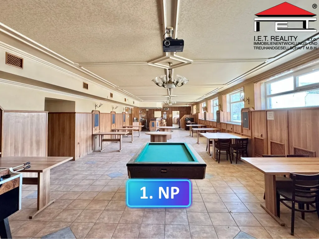 1.NP o výměře cca 1126 m² je zařízeno pro provoz restaurace, aktuálně nepronajato, pracujeme na zajištění nového nájemce/nájemců.