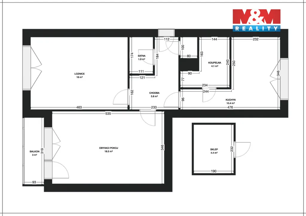 Dům prošel kompletní revitalizací – má zateplenou fasádu, plastová okna a celkově udržovaný stav. Velkým benefitem je zasklený balkon a také prostorný sklep, který svou velikostí přesahuje běžný standard a není započítán do podlahové plochy bytu.