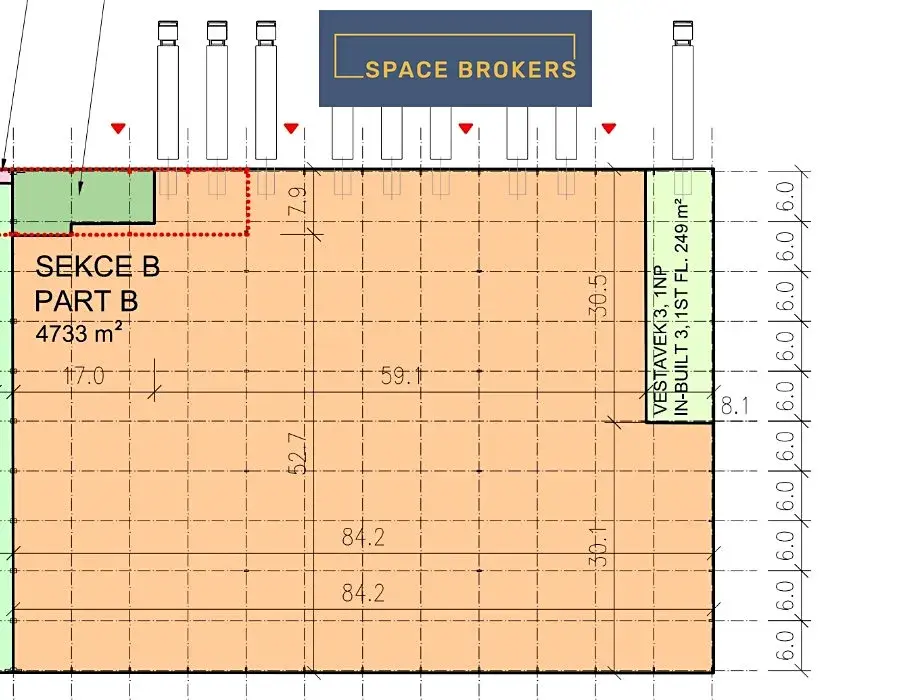 DC7 - 4.733 m2 skladovací plochy s 348 m2 kanceláří a soc. zázemím