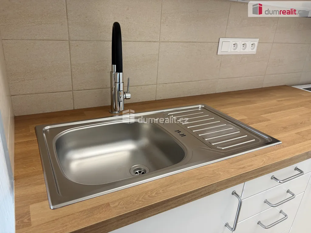 Dumrealit.cz Vám zprostředkuje úplně nový, slunný, jižně orientovaný 2kk, 45m² +sklep, v osobním vlastnictví, v pátém patře panelového domu s výtahem. Byt je po kompletní, čerstvě dokončené rekonstrukci - budete první nájemníci. Dispozičně nabízí vstupní předsíň s velkou šatní skříní, ložnici s manželskou postelí a obývací pokoj s odděleným, plně vybaveným kuchyňským koutem. Dále pak koupelnu s vaničkou a sprchovým koutem a samostatné WC. V celém bytě jsou plovoucí podlahy nebo dlažba. Plastová okna jsou vybavené žaluziemi. Vstup zajišťují bezpečnostní dveře. Celý interiér je laděný v příjemných světlých odstínech.