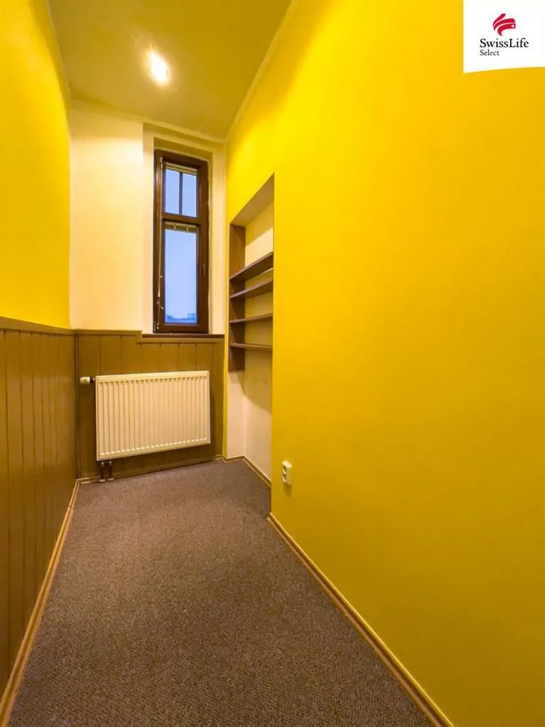 Jeden z pokojů má vstup na balkón, další balkón pak můžete využít ještě v mezipatře. O ten se však budete případně dělit se sousedním bytem. Dalším obrovským benefitem je zahrádka ve vnitrobloku domu a veliký sklep, který se nachází v suterénu.