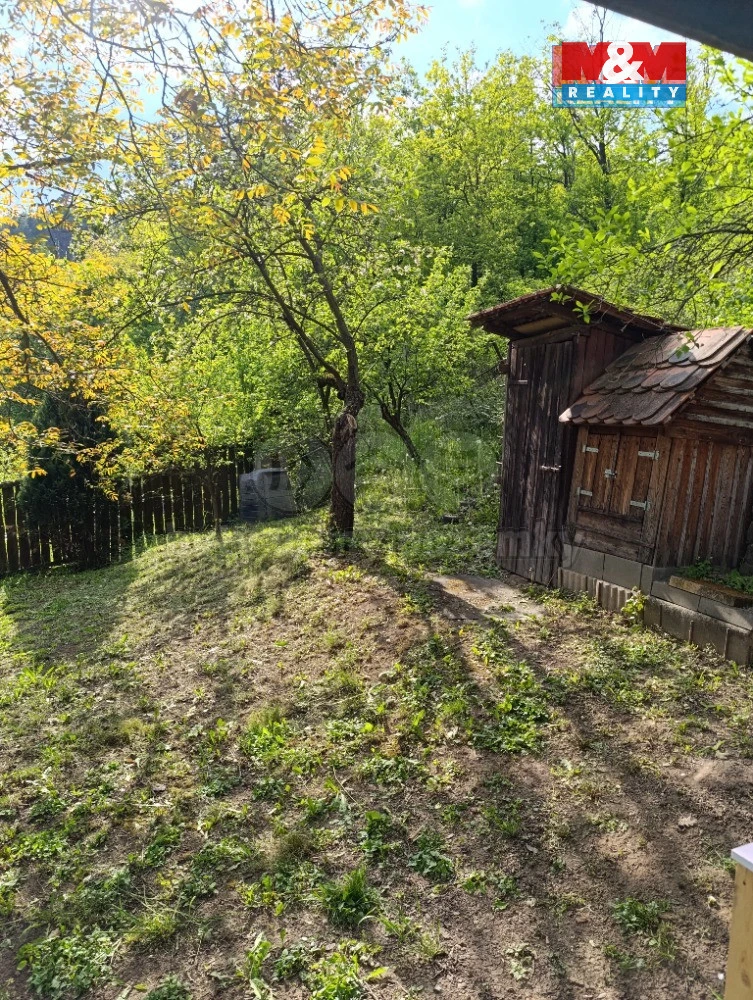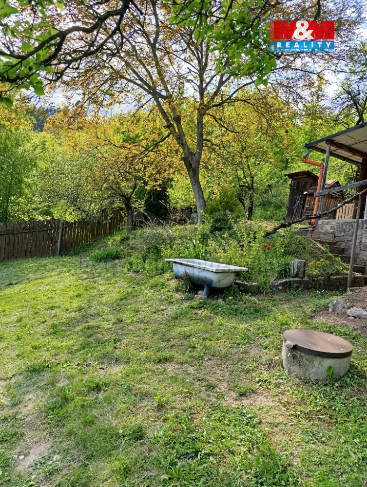 Na zahradě rostou ovocné stromy, je zde dostatek místa na pěstování i posezení. Parkování je možné přímo na pozemku. Chata je podsklepená.