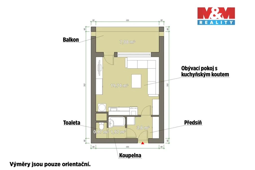 Byt o podlahové ploše cca 27 m² velmi prakticky