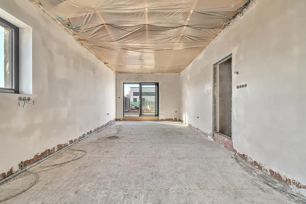 K prodeji je novostavba jednopodlažního rodinného domu (č. 1) ve and #34;městě mezi lesy and #34; - v Horním Jelení. Dům je situován na rovinatém pozemku o výměře 864 m2, v okrajové nově vznikající rezidenční čtvrti, severně od centrální části obce. Rodinný dům je půdorysného tvaru obdélníku s rozměry 14,66 m x 9,11 m. Výška objektu od úrovně 1. NP k hřebenu střechy je 5,5 m. Dům nabízí zastavěnou plochu 133,6 m2, užitnou plochu 104,6 m2 a je dispozičně řešený jako 4+kk. Skrze zádveří je vstup do chodby a následně do obývacího pokoje s kuchyní a jídelnou. Ze vstupní chodby je dále přístupná ložnice s šatnou, pokoj, pracovna, koupelna, technická místnost a WC. Z kuchyně je vstup do spíže. Pozemek bude oplocen. Dům bude předán zkolaudovaný, jeho dokončení je plánováno na červenec 2026. Okna a dveře na terasu jsou plastová s izolačním trojsklem. Střešní krytina je z keramických tašek Tondach. V obytných místnostech budou použity lepené vinylové dílce, v místnostech hygienického zázemí a technické místnosti keramická dlažba. Vnitřní dveře budou dřevěné plné s CPL povrchem osazené do dřevěných obložkových zárubní. Koupelna bude osazena sanitární technikou. Součástí domu při předání nebude kuchyňská linka. Dům je napojen na veřejný vodovod, kanalizaci a elektřinu. Vytápění domu zajistí tepelné čerpadlo vzduch-voda s podlahovým vytápěním. Pozemek je příjemně orientován, v zástavbě nízkopodlažních rodinných domů, s lesem za zády a v obci s dobrou úrovní občanské vybavenosti. Z Horního Jelení jsou skvěle dostupné Holice, Vysoké Mýto, Borohrádek a Choceň. Do 30 min. jste v Hradci Králové. Svou polohou uprostřed lesů láká ke sportu i k procházkám k blízkým rybníkům. Okolní lesy nabízí každoroční bohatou úrodu hub a borůvek.
