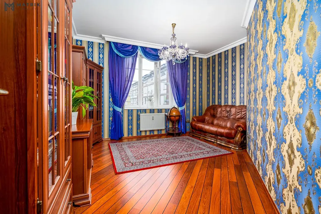 Interiér byl realizován s použitím kvalitních a nadstandardních materiálů. Současné provedení odpovídá stylu své doby, přičemž dispozice i charakter bytu zároveň umožňují poměrně snadnou úpravu do výjimečného moderního bydlení podle vkusu nového majitele.