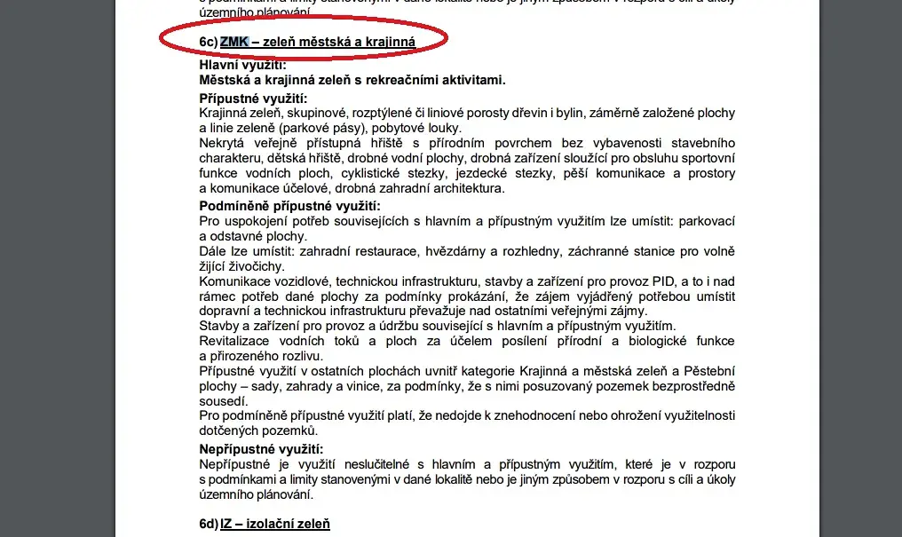 V platném územním plánu je pozemek vedený jako zeleň městská a krajinná.