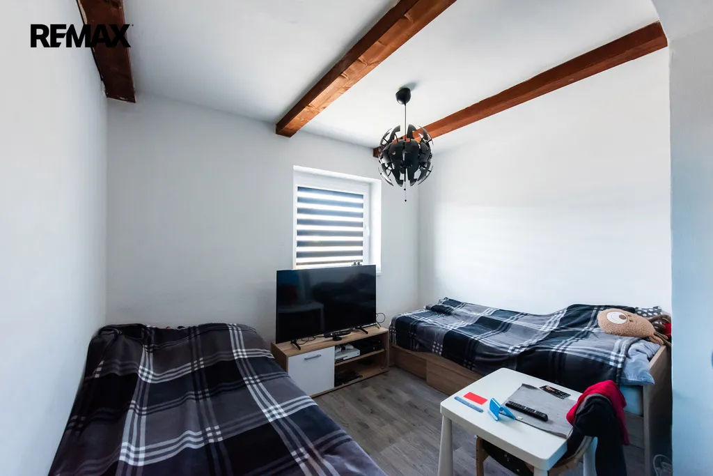 • V 1. NP samostatná jednotka o dispozici 4+kk, s koupelnou a WC o podlahové ploše 83,5 m2 se vstupem do obytného podkroví s obytnou plochou cca 60 m2 s možností další rozšíření na ubytovací prostory