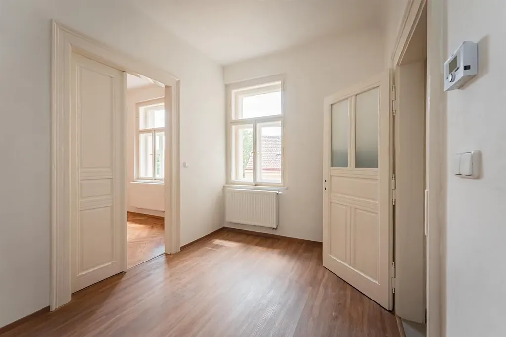 Zrekonstruovaný byt 2+kk (o celkové ploše 34,48m2), s orientací do klidného vnitrobloku, je situovaný v 2.patře (3.NP) reprezentativní budovy s výtahem, v oblíbené lokalitě Praha 2 Nové Město. Interiér bytu je nezařízený a dispozičně nabízí vstupní předsíň (2,77m2), kuchyň (11,91m2), ze které je vstup do ložnice (16,45m2) spojené s obývacím prostorem. Kuchyň je vybavená novou kuchyňskou linkou včetně spotřebičů: lednice s mrazákem, varná deska a elektrická trouba. Moderní koupelna má vstup z předsíně a disponuje sprchovým koutem, toaletou a pračkou.