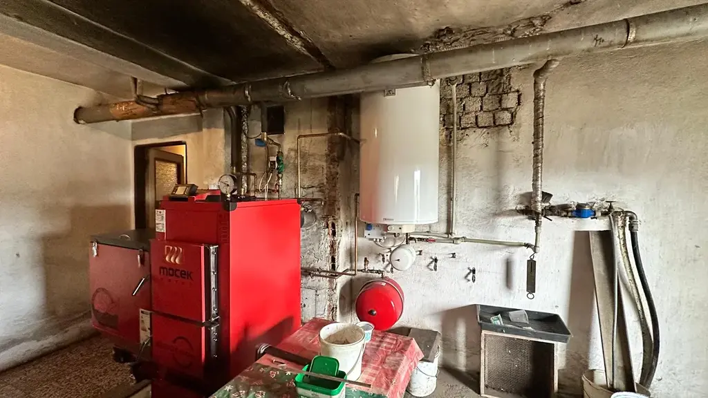 Vytápění domu je řešeno kotlem na tuhá paliva.
