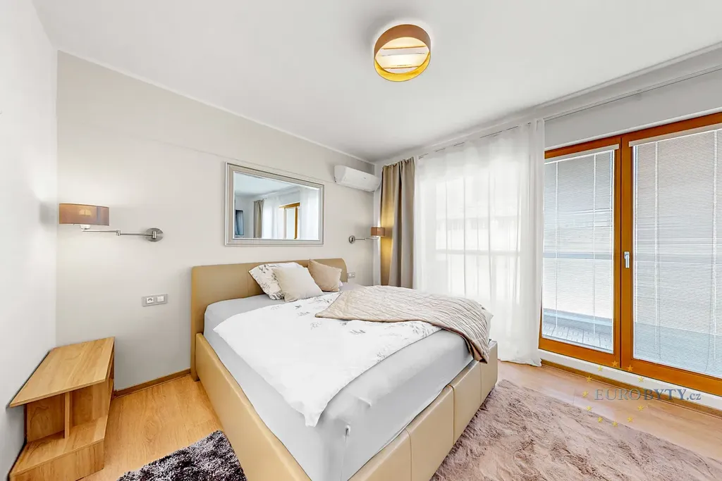 Ve výhradním zastoupení vlastníka si Vám dovolujeme nabídnout pronájem velmi pěkného bytu 4+kk se dvěma balkony a terasou, o celkové výměře cca 133m2, v žádané lokalitě Prahy 4 Podolí. Byt se nachází ve čtvrtém patře (5. NP) novostavby dobře spravovaného bytového domu s výtahem a kamerovým systémem. Dispozičně je byt rozčleněn na předsíň, prostorný obývací pokoj, tři ložnice (1 x se šatnou), dvě koupelny (1 x vana, 1 x sprchový kout) s toaletou, technickou místnost s pračkou a sušičkou a úložnou komoru. K bytu náleží terasa a dva balkony, na které je přístup ze všech obytných místností. Součástí obývacího pokoje je moderní, otevřený kuchyňský kout, který je plně vybaven vestavěnými spotřebiči. Další vybavení bytu na fotografiích (jídelní stůl se židlemi, sedací souprava, postele, komody, osvětlovací tělesa) bylo částečně odstěhováno, ovšem v případě zájmu je možno byt nábytkem opět dovybavit. Klimatizace v ložnici a obývacím pokoji, příjem TV a internetu prostřednictvím kabelové sítě, podlahy plovoucí + dlažba, centrální dálkové vytápění a dodávka teplé vody. Součástí pronájmu jsou i dvě garážová stání v suterénu domu, výhodou je možnost relaxace v upraveném zeleném vnitrobloku s možností posezení. V místě je výborná občanská vybavenost (vše jen pár kroků chůze), jakož i dopravní dostupnost s rychlým spojením do centra města i na Jižní spojku. Ideální pro pro rodinné bydlení, nevhodné pro studentské, či jiné spolubydlení. Preferujeme zájemce o dlouhodobější spolupráci, pokud možno bez velkých domácích zvířat. Cena nájemného byla stanovena ve výši 48.000,Kč/měs. + zálohová platba na zúčtovatelné domovní poplatky cca 7.000,Kč (v závislosti na počtu osob) + převod bytové elektřiny na nájemce. Volný ihned, v případě zájmu o prohlídku neváhejte kontaktovat našeho realitního makléře !