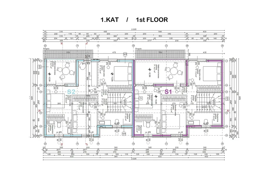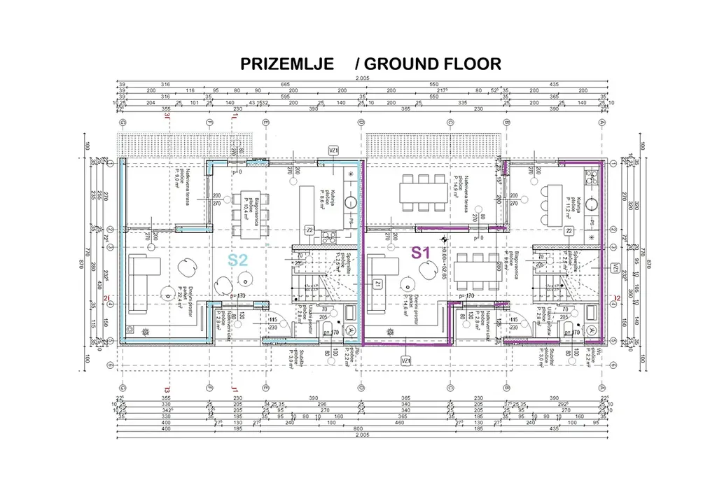 Řadový rodinný dům má dvě podlaží a celkovou užitnou plochu 116,4 m2. V prvním podlaží se nachází vstupní chodba, úložný prostor, koupelna, obývací pokoj s kuchyní a jídelnou s přístupem na prostornou terasu a zahradu. Ve druhém podlaží jsou 3 ložnice, dvě koupelny a terasa s výhledem na moře. Dům je nadstandardně vybaven, má podlahové vytápění v obývacím pokoji a koupelnách, klimatizaci v obývacím pokoji a ložnicích. K domu náleží dvě parkovací stání.