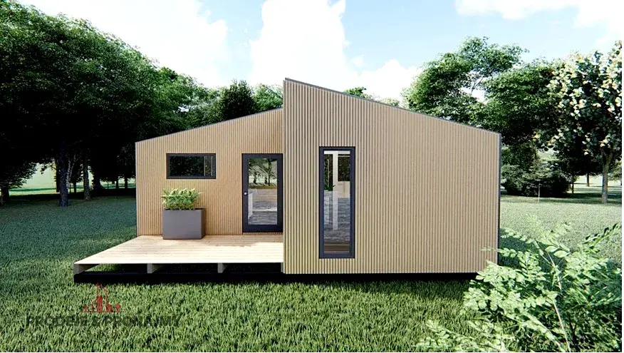 V přímém zastoupení českého výrobce nízkoenergetických dřevostaveb, nabízíme k prodeji stavebnici domu Duo Mini House 45, dispozice 2+kk, se zastavěnou plochou 45m2, v energetické třídě A.
