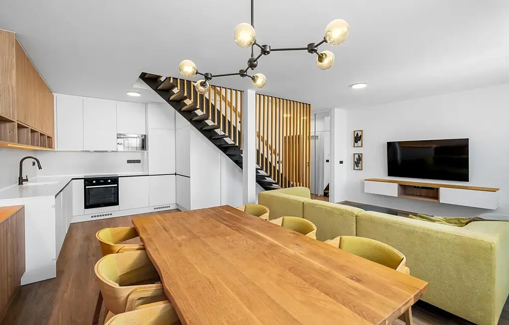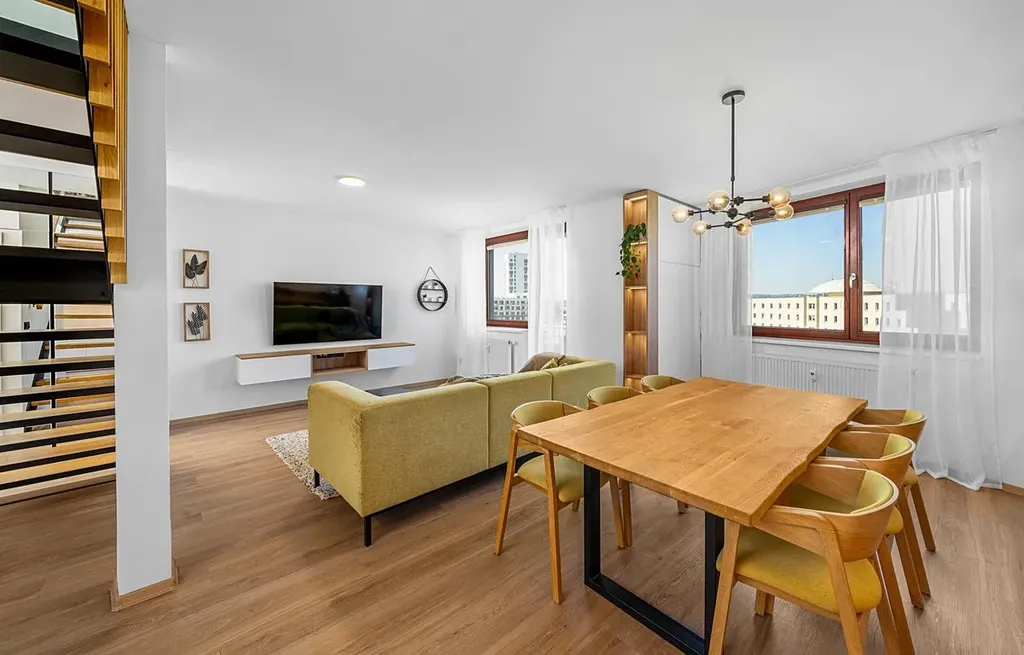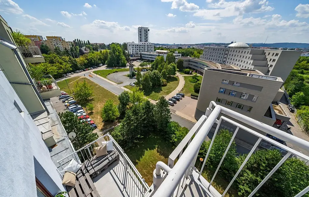 Nabízíme k pronajem exkluzivní mezonetový byt 3+kk, který se nachází na prestižní adrese v Brně, na ulici třída Generála Píky. Tento byt je ideální volbou pro pár či mladou rodinu, která hledá klidné a komfortní bydlení s moderním designem. Do mezonetového bytu v 8. nadzemním podlaží s užitnou plochou 123,5 m² se dostanete jedním ze dvou nových výtahů.V roce 2022 prošel tento byt kompletní rekonstrukcí. Návrh a realizace tohoto moderního a unikátního interiéru zajistila renomovaná brněnská designerská společnost, která si na provedení dala opravdu záležet. Vinylové podlahy, moderní obklady, nábytek na míru z dubového dřeva, vestavěné skříně s dostatkem úložného prostoru a nadčasové prvky Vás rozhodně zaujmou. V moderně vybavené kuchyni je kamenná pracovní deska se zapuštěným dřezem a vestavěnými spotřebiči.Dominantou bytu je prostor pro živou zeď vysokou 3 metry a masivní dubové schodiště s proskleným zábradlím, které dodávají interiéru přirozenost a nadčasovost. Obývací pokoj je propojen s kuchyní a jídelnou, což vytváří prostorný a světlý centrální prostor o výměře 42 m².Byt je orientován na západ a zaručuje nádherný výhled na celé Brno. Dva balkony, z nichž jeden je přístupný z obývacího pokoje a druhý z ložnice, jsou díky svému umístění v posledním patře maximálně soukromé. Můžete si zde užívat grilování či relax s rodinou a přáteli a nikdo Vás nebude rušit.Byt disponuje dvěma toaletami, v koupelně ve druhém patře najdete vanu, sprchový kout a WC. Ve druhém patře tohoto mezonetového bytu se nachází také ložnice, pracovna a šatna, ze které je přístup na půdu o výměře 12 m², tento prostor je ideální pro vybudování nikým nerušeného místa, například pracovny a zvětší tak mezonet na 4+kk. Příprava na klimatizační jednotky Vám zajistí optimální teplotu v každém ročním období. Vytápění a ohřev teplé vody jsou řešeny centrálně, dálkově (teplárny). K bytu náleží dvě prostorné sdílené kolárny v 1. a 8. nadzemním podlaží, které poskytují dostatek místa pro úschovu kol a dalších potřeb.Za pouhých 10 minut se ocitnete v centru města, přesto si užíváte klidné prostředí s kompletní nabídkou služeb, které máte na dosah ruky. V blízkosti tohoto bytu se nachází obchody, moderní kavárny a restaurace, školy, školky a univerzity. Pro milovníky sportu je hned za domem nový, velice oblíbený fitness a wellness club ZONE4YOU s rozlohou 2 500 m². ZONE4YOU poskytuje širokou nabídku skupinových lekcí, 54 posilovacích a kardio strojů, squashové kurty a relax v bazénu, sauně či soláriu. V blízkosti tohoto bytu se nachází nově zrekonstruované plavecké bazény Lužánky, oblíbený park Lužánky a Arboretum, kde si můžete užívat klidné procházky. Pro ty, kteří rádi navštěvují kulturní akce, je nedaleko známé eventové sídlo Boby centrum, kde se každoročně pořádá nespočet zajímavých společenských akcí.