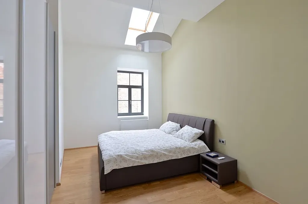Moderní částečně zařízený byt v 5. patře historické budovy s výtahem, dnešního rohového paláce, postaveného ze čtyř středověkých měšťanských domů v 19. století, v srdci Brna, jen pár kroků od náměstí Svobody a mnoha historických památek.Byt sestává z obývacího pokoje s plně vybaveným kuchyňským koutem, jedné ložnice s balkonem orientovaným do vnitrobloku, koupelny se sprchovým koutem a toaletou a vstupní haly s úložným prostorem.