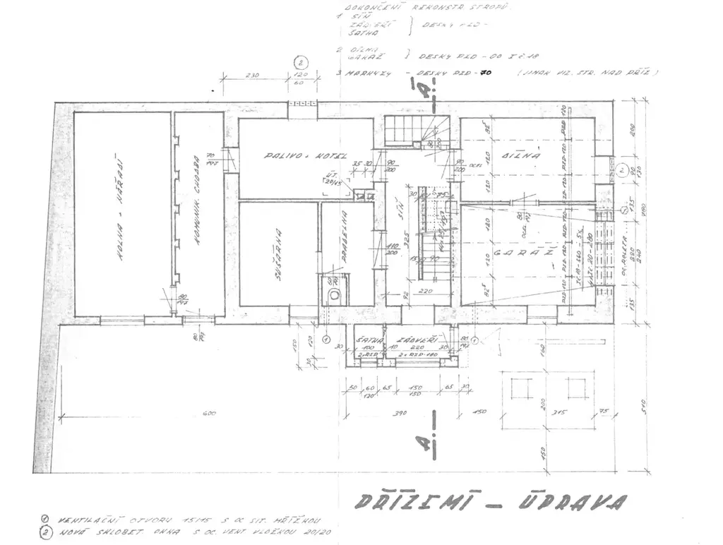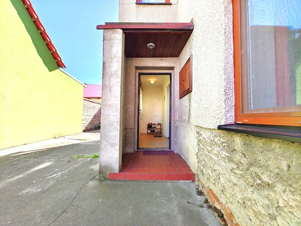 Rodinný dům o dvou nadzemních podlažích (+ sklep) z roku 1980 nabízí dostatek prostoru pro velkou rodinu nebo pro fungování dvou samostatných bytových jednotek. K hornímu bytu (4+1) náleží velká terasa nad garáží s orientací na jiho-západ, která nahrazuje posezení na zahradě a v létě zafunguje jako druhý obývací pokoj. Stejné zázemí poskytne dolnímu bytu (3+kk) dvorek, který se ještě zvětší po případném zbourání dřevěné stodoly.