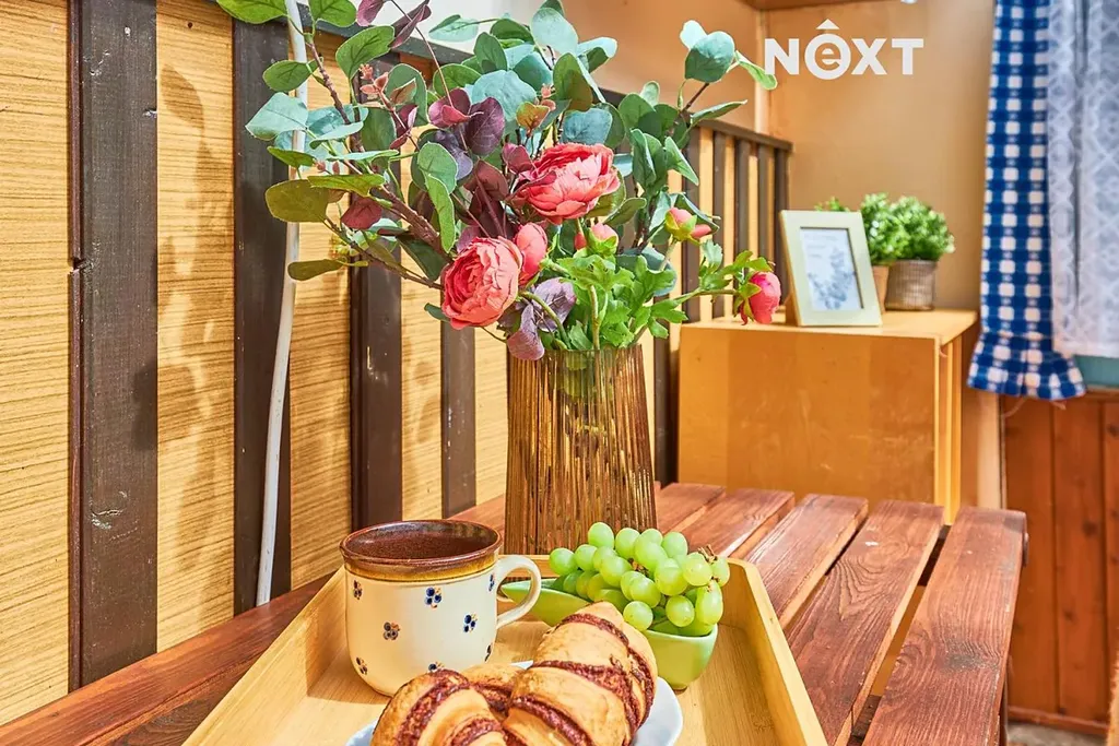 Vnitřní uspořádání je praktické: ve spodní části najdete koupelnu se sprchovým koutem a WC, bojler na ohřev vody a prostor pro volné využití. Hlavní obytná místnost s kuchyní a další místností pro odpočinek se nachází v přízemí a navazuje na ni zimní terasa. Podkroví slouží jako místo na spaní. Voda je řešena vlastním vrtem.