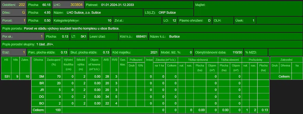 Prodej lesního pozemku a pozemku vedeného jako ostatní plocha v katastrálním území Buršice, obec Kolinec, okr. Klatovy. Jedná se o pozemek p.č. 253, lesní pozemek o výměře 5.147 m² a o pozemek p.č. 376/2, ostatní plocha o výměře 48 m². Celková výměra pozemků činí 5.195 m². Pozemky spolu nesousedí. Lesní pozemek je situován na mírně svažitém terénu s přístupem po nezpevněné státní cestě z vrchní strany a částečně zpevněné lesní cestě ze strany spodní, která pozemek protíná a je jeho součástí. Na ploše lesního pozemku se dle platných LHO nachází lesní porost smrku a břízy ve věku 33 let, lesní porost břízy, smrku, jeřábu a osiky ve věku 20 let a lesní porost smrku, břízy, borovice a jeřábu ve věku 11 let. Foto je aktuální. Informace na tel. nebo e-mailu.