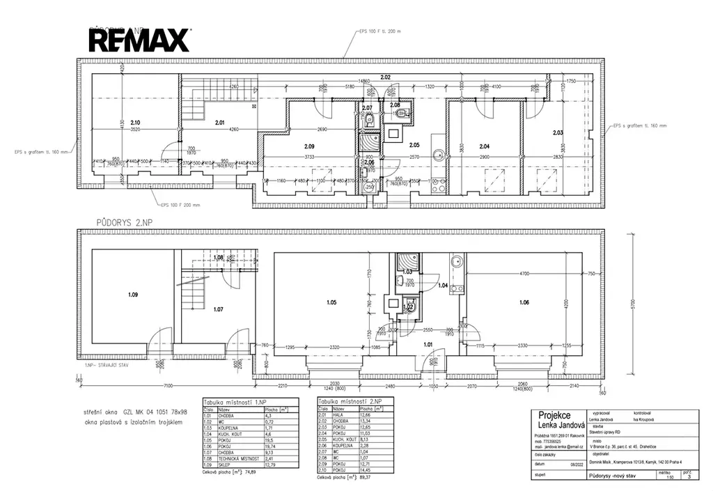 Dispozice: 2 samostatné bytové jednotky (2+kk a 4+kk).