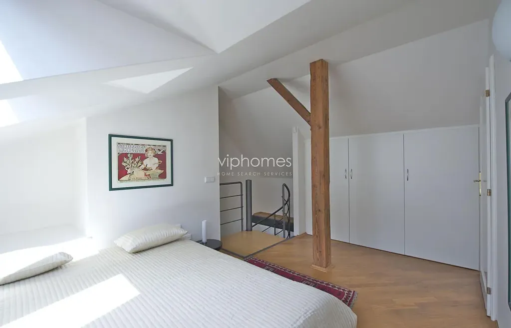 V úrovni vstupu byt disponuje útulným obývacím pokojem s jídelním koutem, vybavenou moderní kuchyní, koupelnou a ložnici se šatnou. Horní patro se sestává ze druhé ložnice se šatnou a koupelny. Vybavení bytu :podlahy dřevo-masiv, vestavěné skříně, pračka se sušičkou, myčka nádobí, telefonní linka, internetové a satelitní TV připojení, domácí videotelefon. V přilehlých ulicích je zavedený pražský systém parkovacích zón a rezidenti mají nárok na parkovací karty. Možnost parkování v nedalekých garážích poblíž, cca 300 m / modrá zóna.