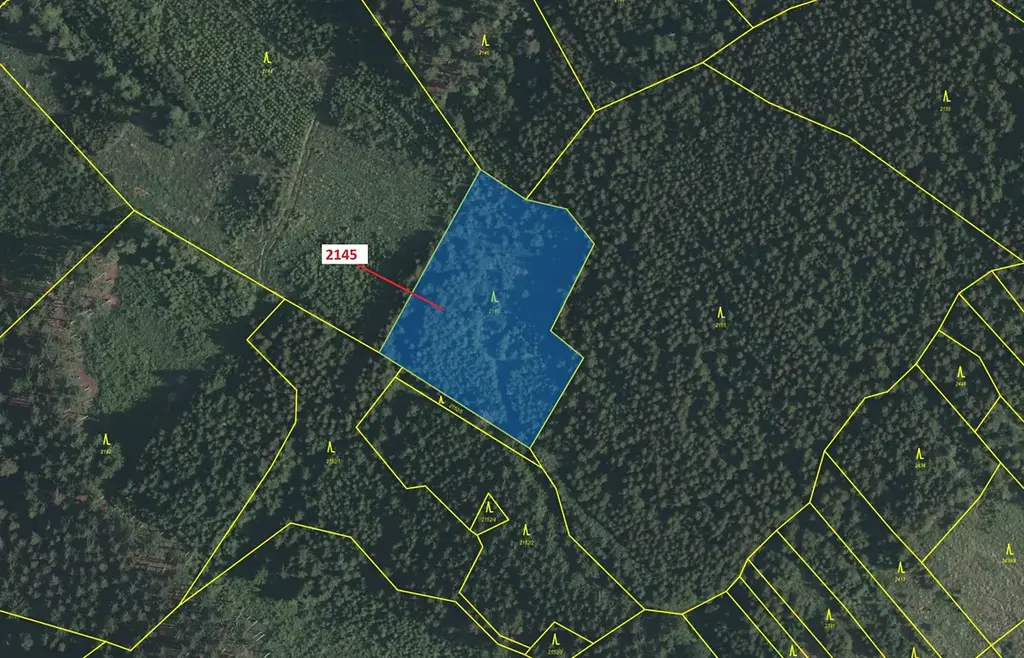 Lesní pozemek o výměře 5413 m2, parcelní číslo 2145, podíl 1/1, katastrální území Strmilov, obec Strmilov, obec s rozšířenou působností Jindřichův Hradec, okres Jindřichův Hradec, Jihočeský kraj.