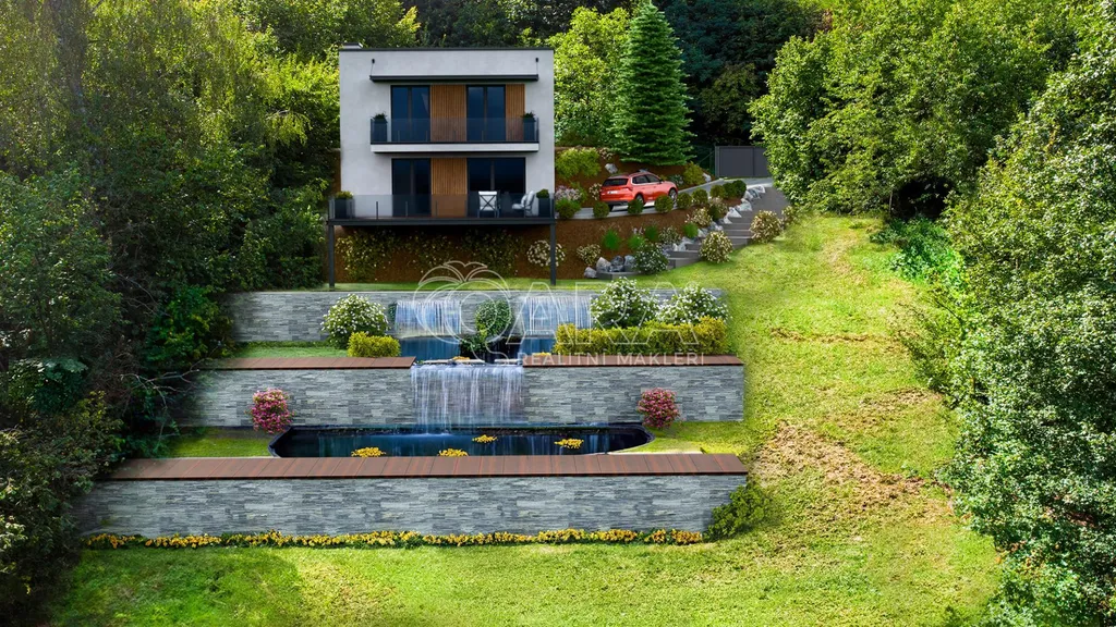 Jeho svažitý terén ocení především ti, kteří využijí tento potenciál pro výjimečnou stavbu s nevšedním výhledem na malebné údolí řeky Berounky a např. k realizaci kaskádové zahrady s jezírky a vodopádem či rybníčkem. Z pozemku lze dokonce spatřit i hrad Karlštejn.