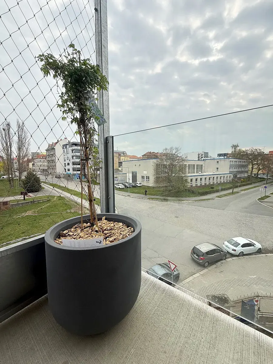 Prostor a výhled: Dominantou bytu je rohová lodžie se skleněným zábradlím, která nabízí nerušený výhled do okolí a dostatek místa pro venkovní posezení. Plocha lodžie je velkorysých 22 m2.