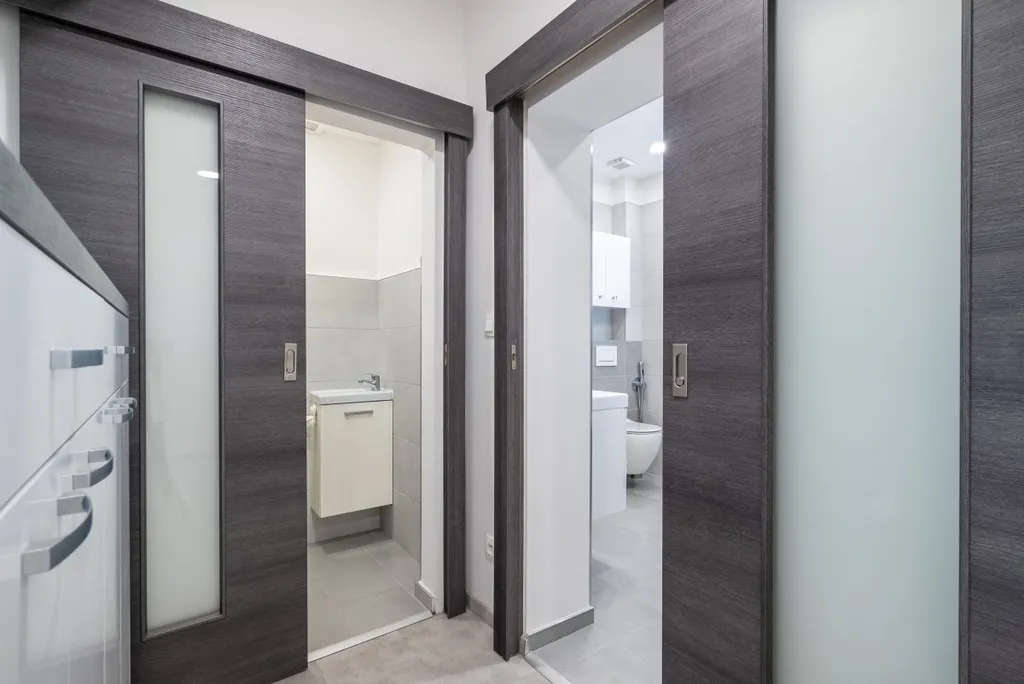 Po vstupu do bytu na nás čeká zádveří, díky kterému Vám neprofoukne do celého prostoru, po vstupu do obrovské chodby, která je spojená obývacím prostorem s kuchyní se také dostaneme do všech místností - neprůchozích pokojů, spižírny, koupelny či záchodu nebo na terasu. Nabízí se částečně vybavený. Kuchyně disponuje elektrickou troubou, plynovým sporákem s digestoří, myčkou a volně stojící lednicí. Dále je v kuchyni klasický a barový stůl s židlemi. Obývací část je zařízena krbem. Byt disponuje dalšími třemi neprůchozími pokoji. Jeden je úplně prázdný, do druhého stačí dovézt jen postel a třetí může být jako kancelář.V koupelně je sprchový kout i vana a také jedna z toalet, najdeme zde také připojení na pračku a sušičku. Druhá toaleta je umístěna samostatně.  Prostornou terasu o velikosti 10m2 můžeme zastřešit elektricky ovládanou markýzou. V oknech jsou žaluzie, síta proti hmyzu a také elektricky ovládané venkovní rolety. Vytápění celého bytu je zajištěno plynovým kondenzačním kotlem s teplovodním podlahovým topením. Na střeše jsou fotovoltaické panely, které jsou pouze pro tento byt, a zajišťují po větší část roku dostatek energie, tím pádem i nižší náklady.  Přebytky z FVE se ukládají do baterii a ohřev TUV, což opět snižuje náklady. Veškerá technologie FVE, včetně plynového kotle, zásobníku na TUV je umístěná ve sklepě.  V obývacím pokoji jsou krbová kamna, která spolehlivě vytopí většinu bytu. Veškeré interiérové dveře jsou posuvné, pouze do zádveří a špajzu jsou klasické.
