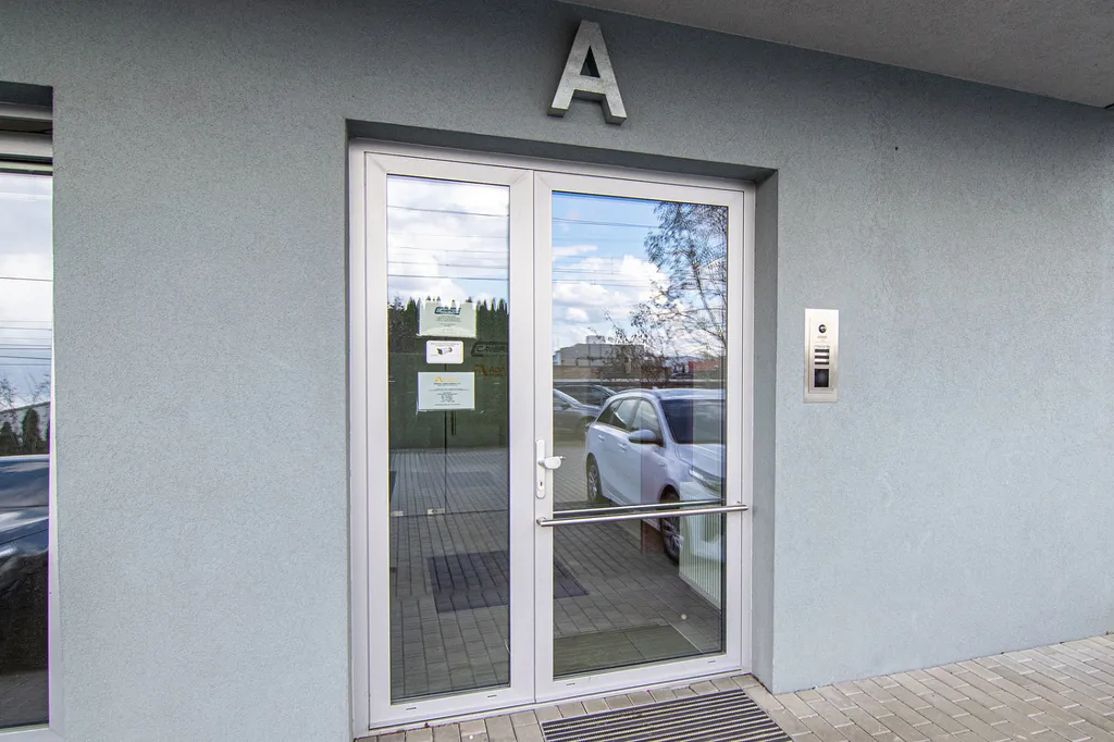 Na stejném podlaží v pravé části budovy má kanceláře firma s klidným chodem.