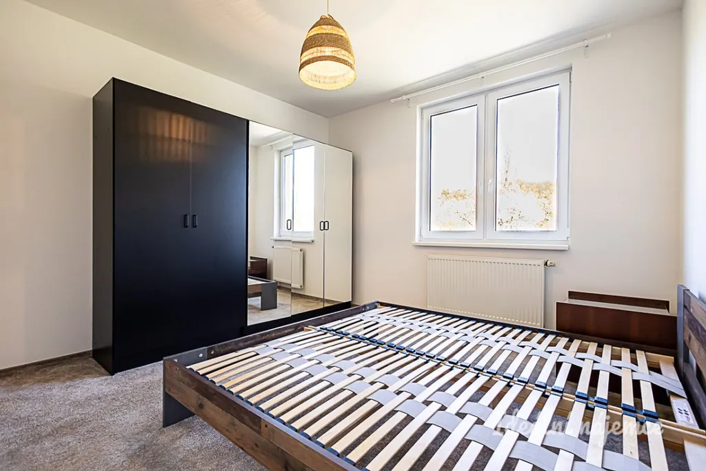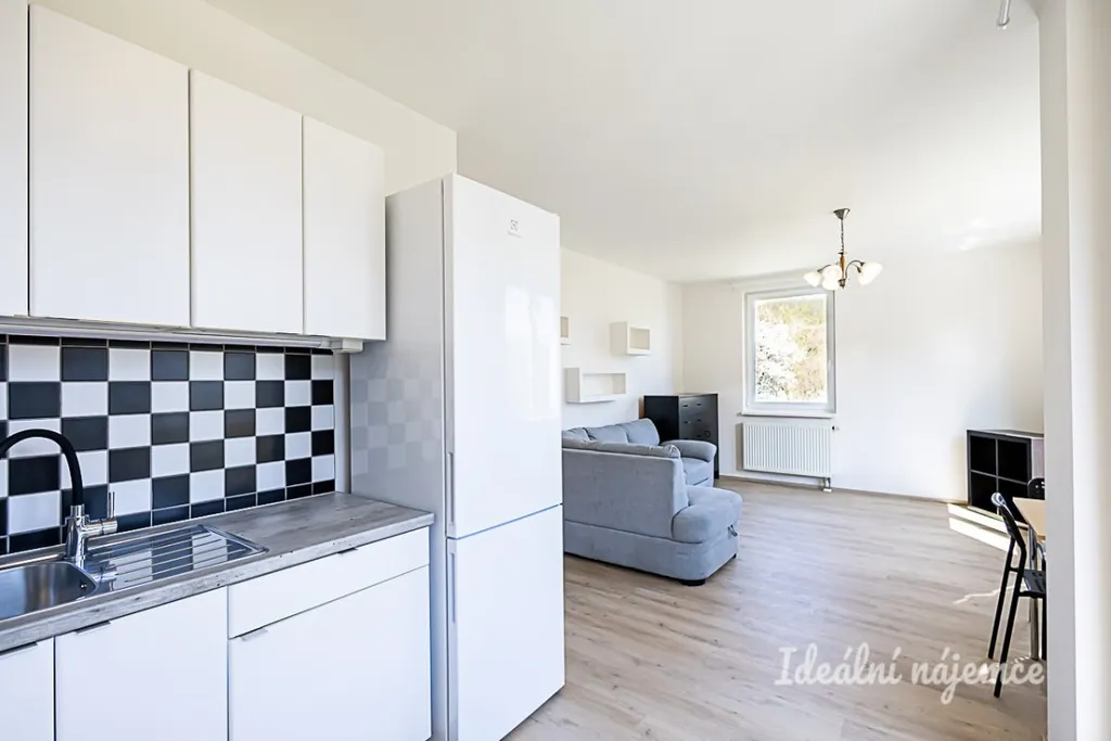 Byt se nabízí částečně vybavený. Dispozičně nabízí velmi prostornou předsíň i plně vybavenou koupelnu. Kuchyňská linka je prakticky umístěna v zadní části obývacího pokoje a obsahuje všechny potřebné spotřebiče včetně myčky. Kuchyně je po částečné rekonstrukci a splňuje standarty moderního bydlení. Obývací pokoj je částečně vybaven, jak pohodlnou pohovkou, tak jídelním stolem a židlemi. Z obývacího pokoje je možné vstoupit na balkon s nádherným výhledem. Dále pak byt nabízí prostornou ložnici s úložným prostorem.