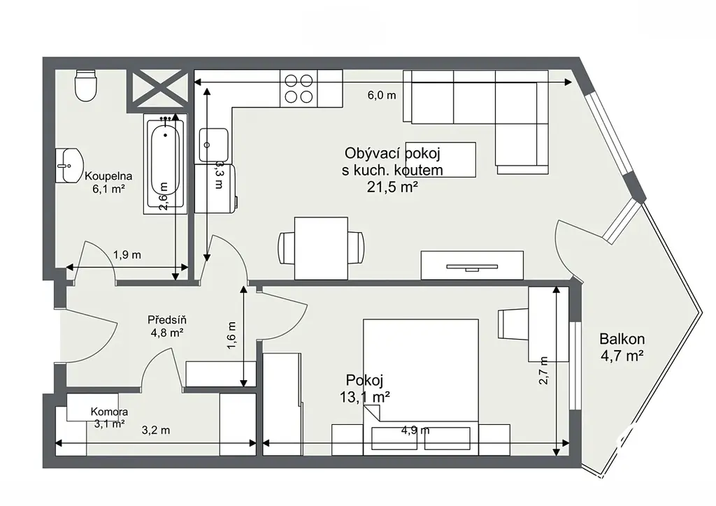 Byt zaujme svým funkčním uspořádáním i příjemnou atmosférou. Dominantou je obývací pokoj s kuchyňským koutem, ze kterého je přímý vstup na terasu. Kuchyňská linka je již součástí vybavení, což novému nájemci usnadní nastěhování i každodenní fungování. Praktickým benefitem bytu je také komora, která poskytuje cenný úložný prostor pro věci, které nechcete mít na očích, ale potřebujete je mít stále po ruce.