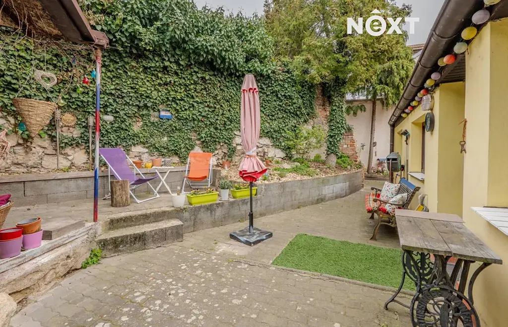 Dům je rohový, přízemní s vinným sklepem a menším udržovaným dvorem, který nabízí dostatek soukromí a možnost posezení a relaxace.