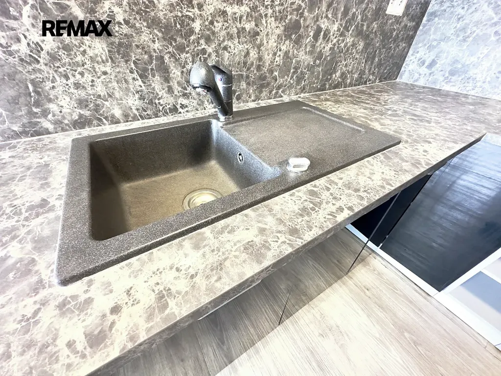 K dispozici je kuchyňská linka vybavená varnou deskou, horkovzdušnou troubou a novou kombinovanou lednicí značky BEKO. Koupelna se zděným jádrem disponuje vestavěným sprchovým koutem.