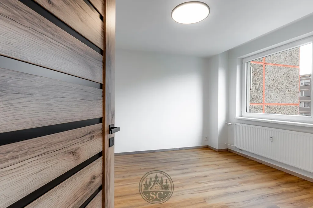 V bytě byly provedeny nové rozvody elektřiny i vody, proběhla kompletní nivelace podlah a následná pokládka vinylu se zvýšenou mechanickou odolností. Součástí je také jídelní stůl z masivu, designové osvětlení v podobě zavěšených kouřových svítidel a televizní stěna.