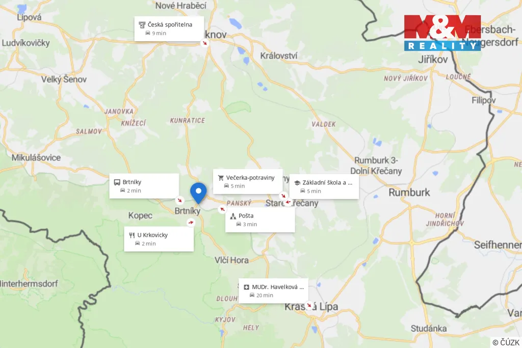 K prodeji nabízíme zděnou stodolu v k. ú. Brtníky. Cihlová stavba z roku 1890, má 2 nadzemní podlaží, nyní celkem 4 místnosti. Součástí prodeje je soubor okolních parcel o výměře 1118 m2. Parcely jsou dle územního plánu určeny jako pozemky k bydlení. Na hranici pozemku je veřejný vodovod a elektřina. Stodolu lze po rekonstrukci využívat jako skladový prostor. Vzhledem k umístění se nabízí i např. využívání k rekreaci. Pozemek se nachází v klidné části obce Brtníky, která je součástí malebného regionu Českého Švýcarska, ten je známý svou nádhernou přírodou a množstvím turistických tras. Veškerá občanská vybavenost je dostupná v nedaleké obci Staré Křečany. Další služby poskytuje např. Rumburk, v dojezdové vzdálenosti cca 5 minut. Tento pozemek je ideální volbou pro ty, kteří hledají klidné místo s možností rekreace a aktivního odpočinku. Nechte se okouzlit krásou Českého Švýcarska!