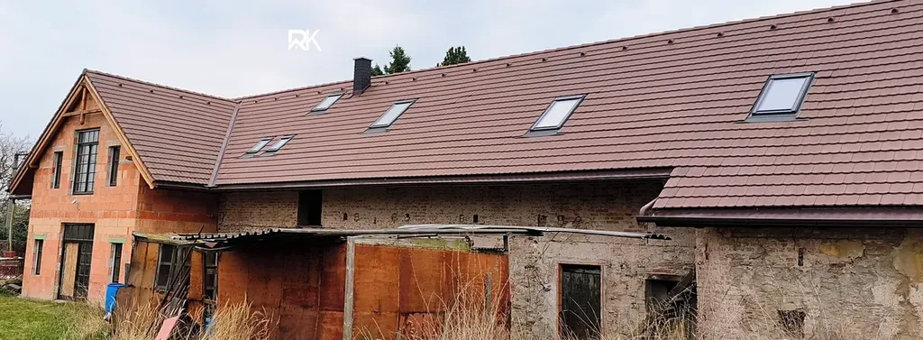 Na pozemku se dále nachází prostorná stodola, výměnek (samostatná obytná jednotka), dílna a sklep. Velkou přidanou hodnotou je také pečlivě uskladněný stavební materiál vysoké kvality (střešní tašky, cihly, izolace aj.), který umožňuje budoucímu majiteli plynule navázat na další úpravy bez nutnosti okamžitých investic.