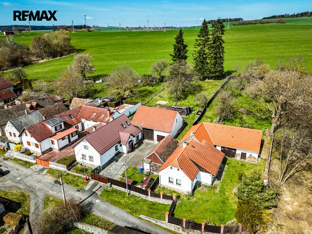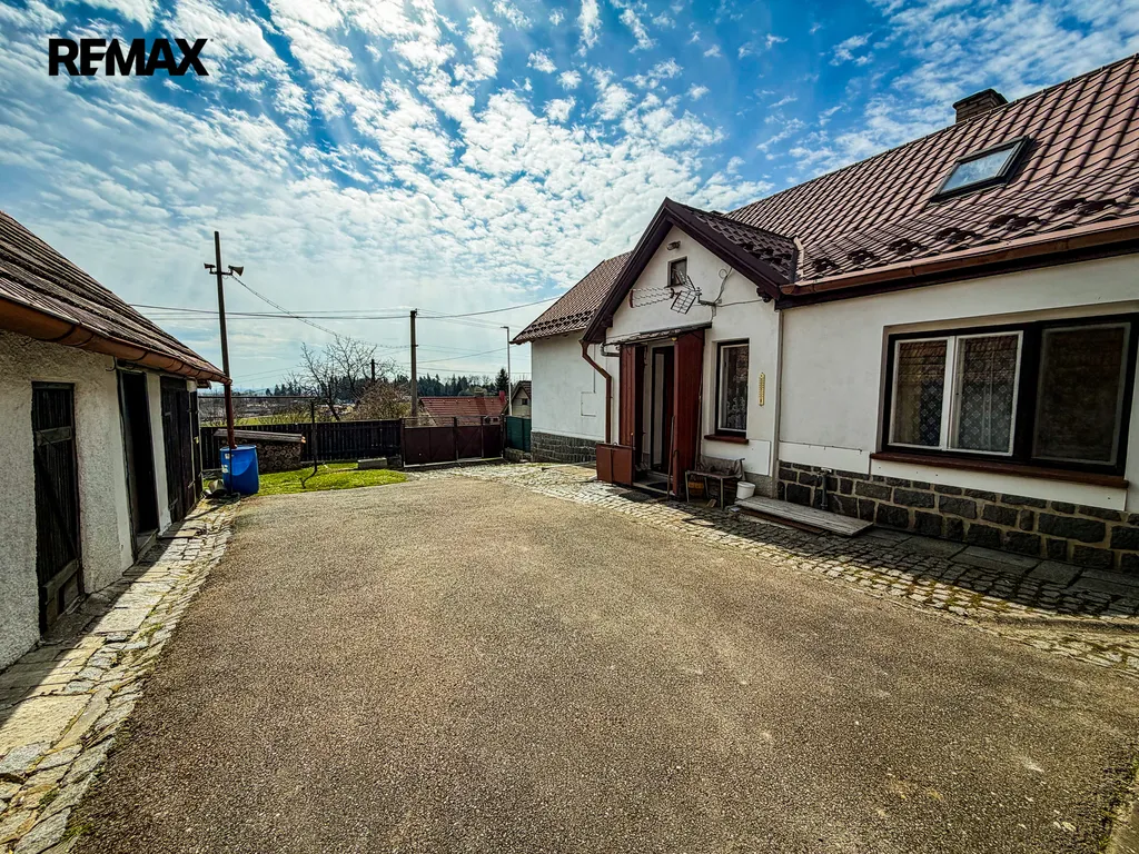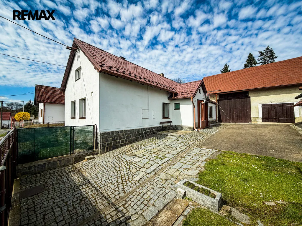 Velkým benefitem je uzavřený dvůr, který poskytuje dostatek soukromí. Na něj navazují další stavby – stodola, garáž a objekt sloužící jako dřevník a sklad.