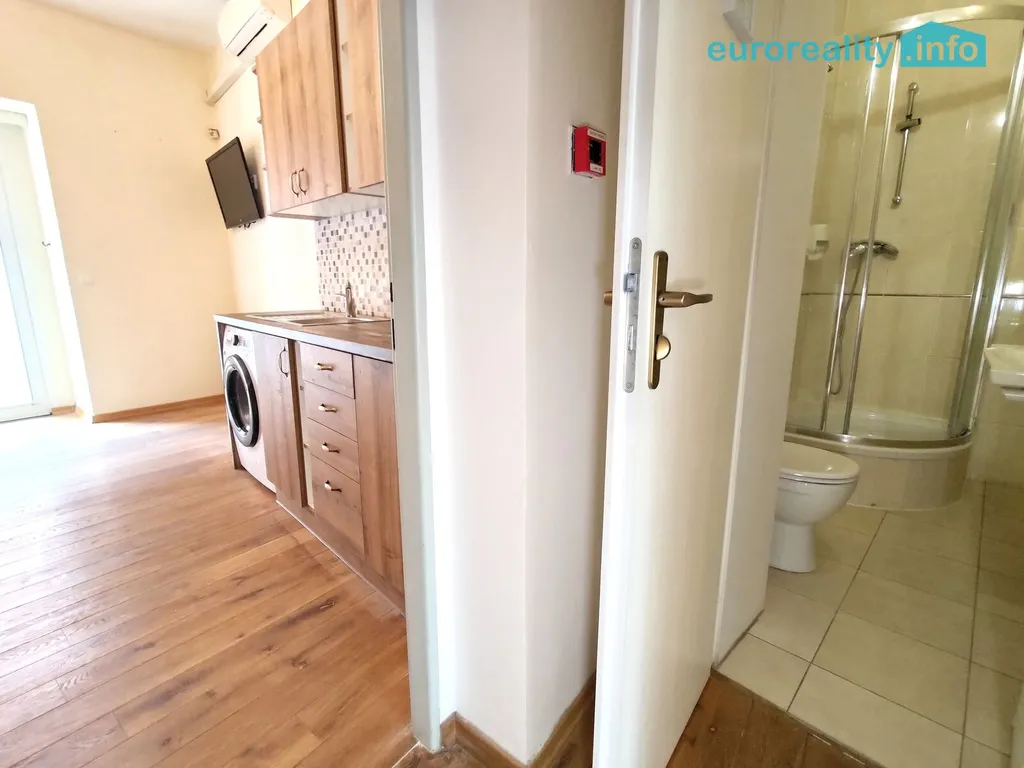 Pokoje jsou ve dvou úrovních. Ve spodní úrovni je jeden pokoj a kuchyně s výstupem do na balkon se schody do klidného vnitrobloku.