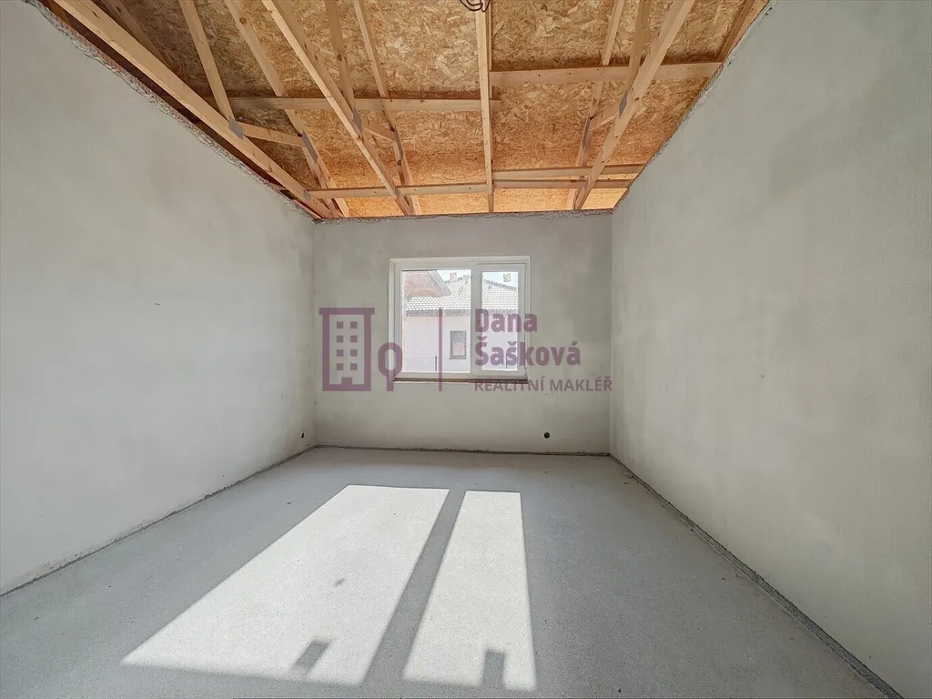 Dům o zastavěné ploše 173 m² je ve fázi rozestavěnosti a nabízí budoucím majitelům možnost dokončení interiéru dle vlastních představ. Dispozičně je navržen jako 4+kk s koupelnou, samostatným WC, spíží, technickou místností a šatnou. Na obytnou část plynule navazuje garáž se skladovým prostorem.