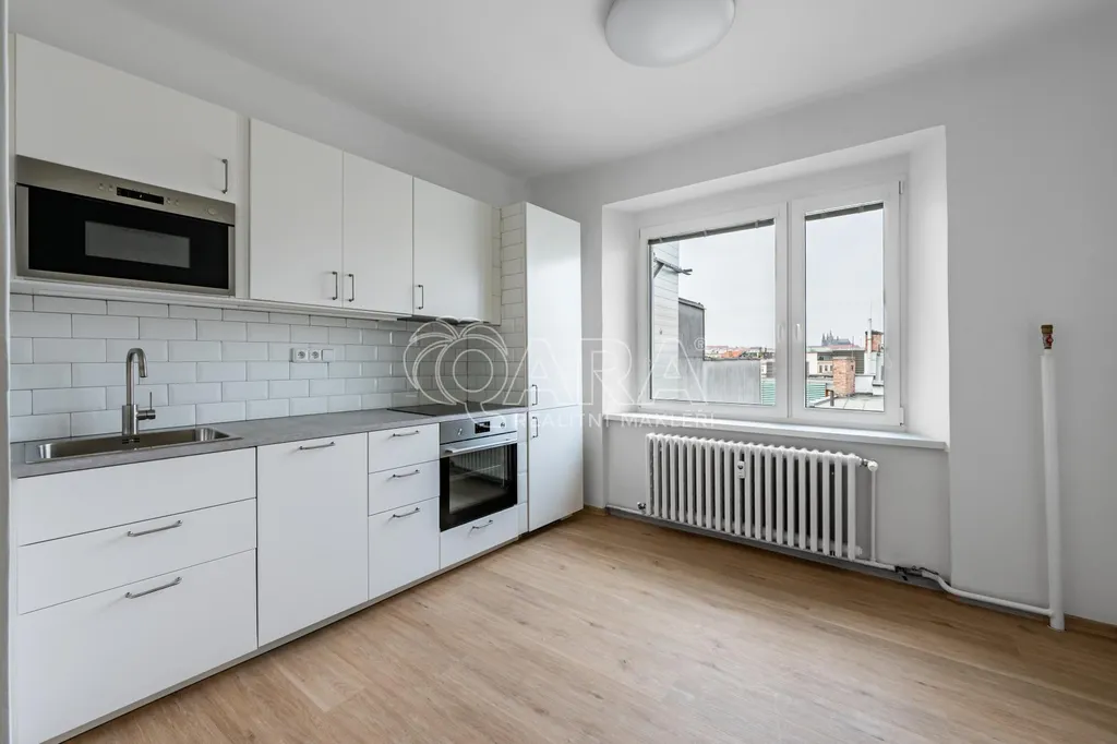 Pronájem světlého zrekonstruovaného bytu 2+1 (84 m2) v 5. patře činžovního domu s výtahem v srdci metropole. Lokalita je perfektně dostupná zejména MHD a nabízí překvapivě klidné a příjemné městské bydlení se všemi službami v bezprostřední blízkosti a s výhledem na Pražský hrad.