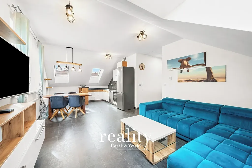 Dominantou je obývací pokoj s kuchyňským koutem (32 m²) - prostorné centrum bytu s moderní kuchyňskou linkou (indukce, myčka, lednice s mrazákem), jídelním stolem se 4 židlemi a masivní sedací soupravou s TV stěnou, ložnice (15,5 m²) vybavena kvalitní manželskou postelí z masivu a šatní skříní, pokoj (12 m²) - ideální jako dětský pokoj či pracovna s rozkládacím lůžkem s kvalitní matrací a šatní skříní, koupelna (5 m²) s rohovou vanou pro váš odpočinek a samostatné WC (2,2 m²) s vlastním umyvadlem.