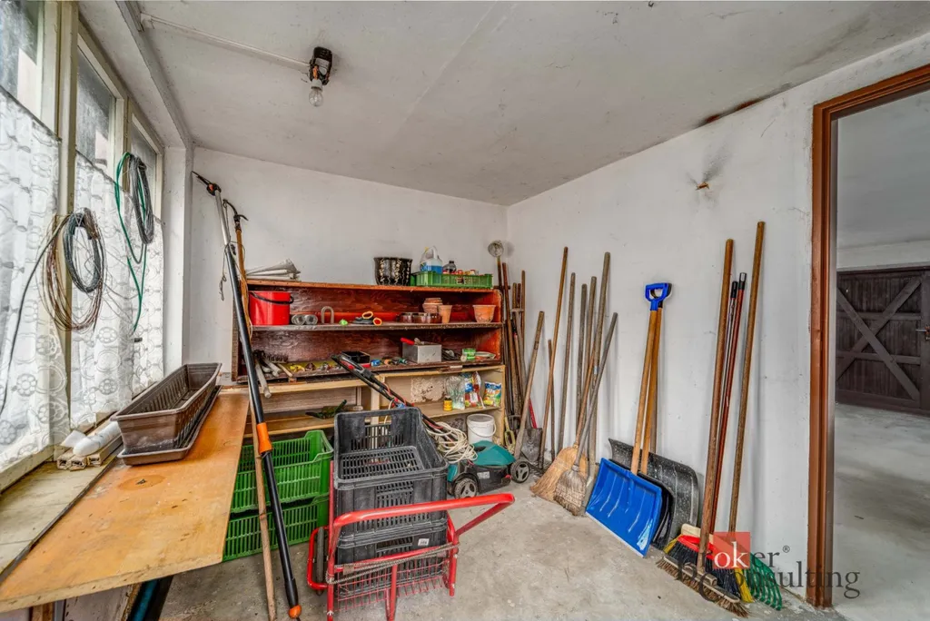 Součástí prodeje je také garáž s dílnou o ploše 32 m2. Tento prostor je neocenitelný nejen pro bezpečné parkování vozu, ale také pro kutily, jako sklad pro zahradní techniku nebo pro realizaci vašich koníčků.