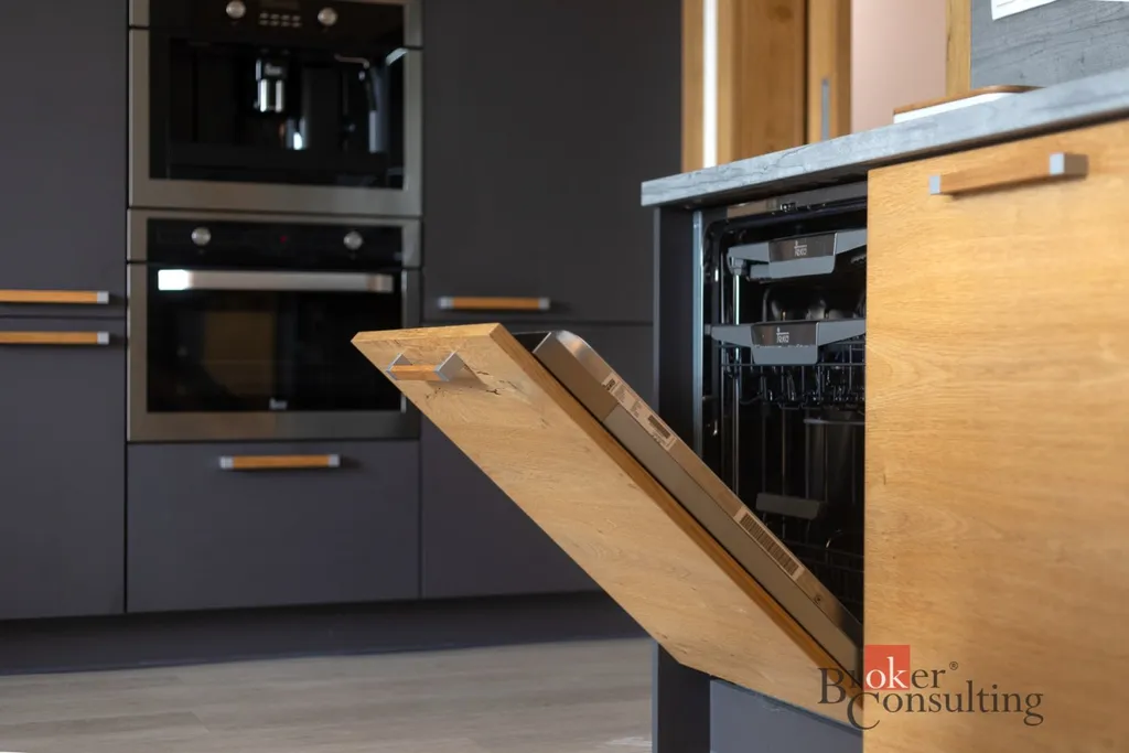 Interiér bytu je řešen ve vysokém standardu s důrazem na detail – dominuje zde nábytek vyrobený na míru v kombinaci dřeva a moderních materiálů. Součástí je plně vybavená kuchyňská linka se spotřebiči, vestavěné úložné prostory, designová koupelna s vanou a pračkou i samostatná komora v bytě.