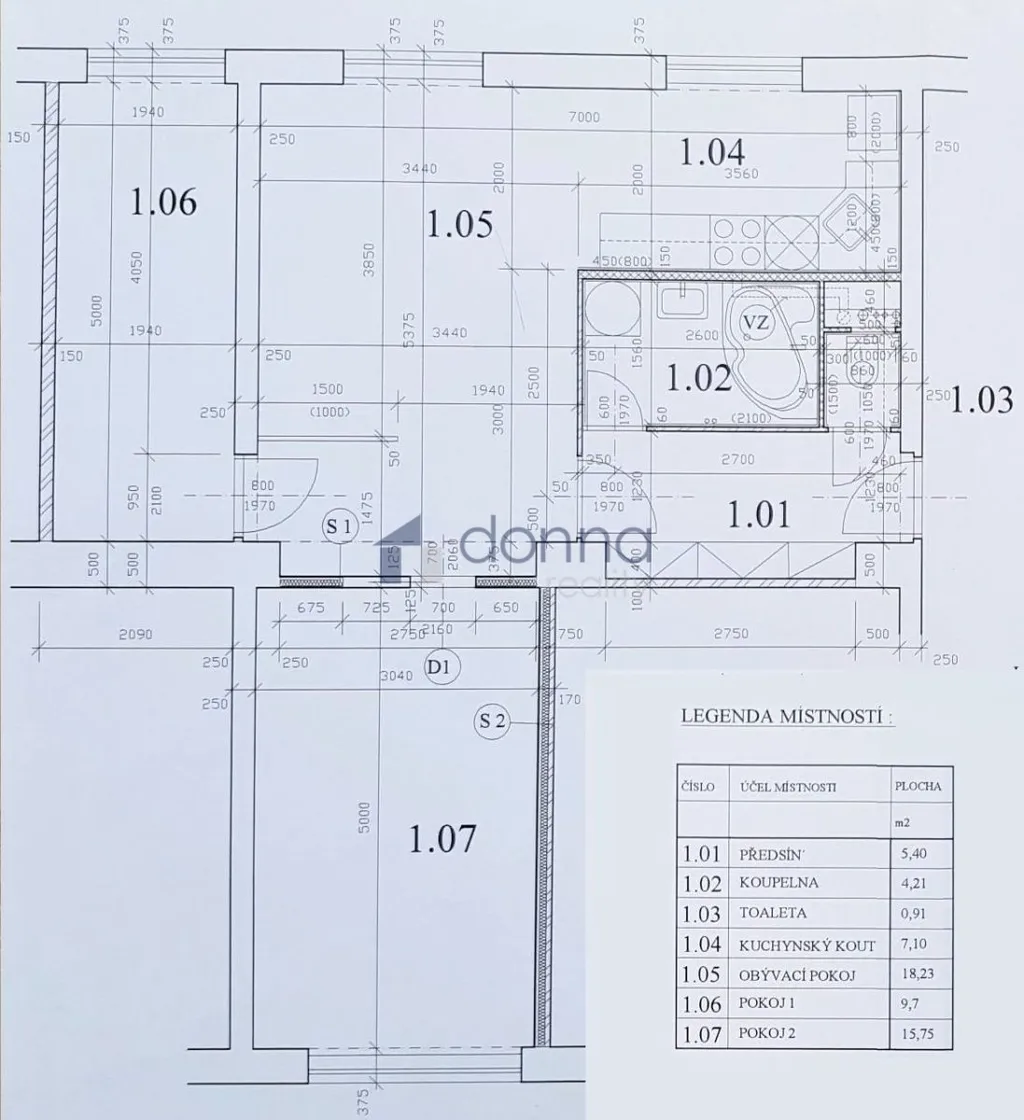 Nabízíme k pronájmu byt 3+kk, o ploše 62m2, ve 3. podlaží cihlového domu bez výtahu, ulice Konšelská, Praha 8 – Libeň.