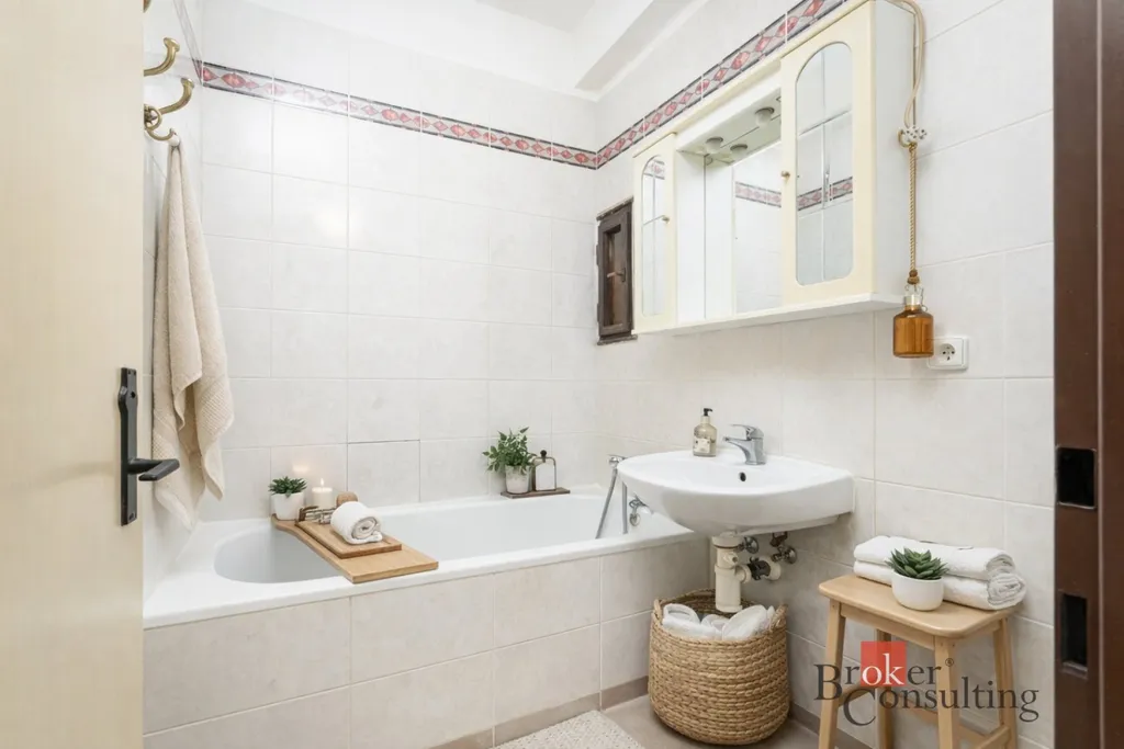 Velkou výhodou je, že část náročných technických kroků už má dům i byt za sebou. V bytě jsou nové radiátory, dům má nové stoupačky, takže budoucí rekonstrukce může navazovat na připravený technický základ. Pod stávajícím linoleem navíc čeká příjemné překvapení – původní dřevěné parkety, které lze renovací proměnit v krásný autentický prvek interiéru.